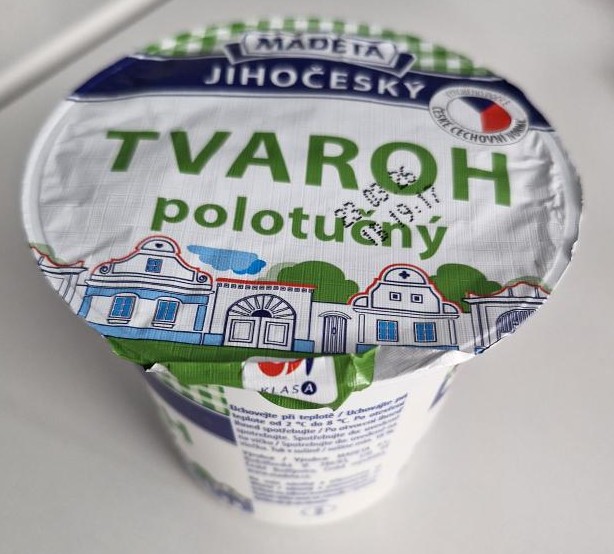 Polotučný jihočeský tvaroh s obsahem tuku v sušině cca 18 %.